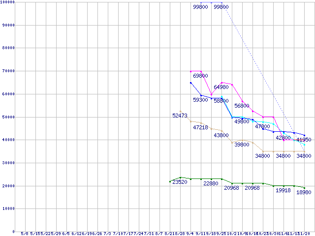 HDD 80GB~100GB未満の最安値推移