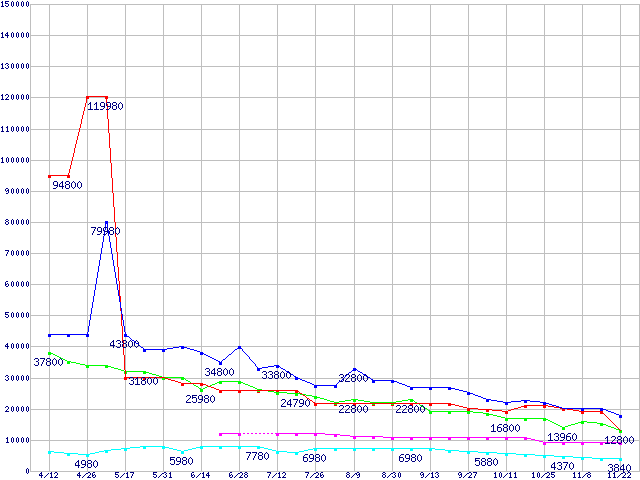 メモリ主要製品の最安値推移