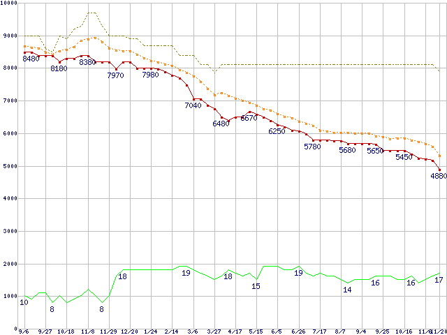 | WD3200AAKS (320GB)の価格推移 | | | (2007年9月6日~2008年11月20日) |