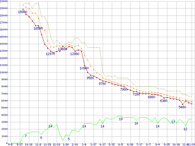 | ST3500320AS (500GB,32MB)の価格推移 | | | (2007年9月6日~2008年11月20日) |