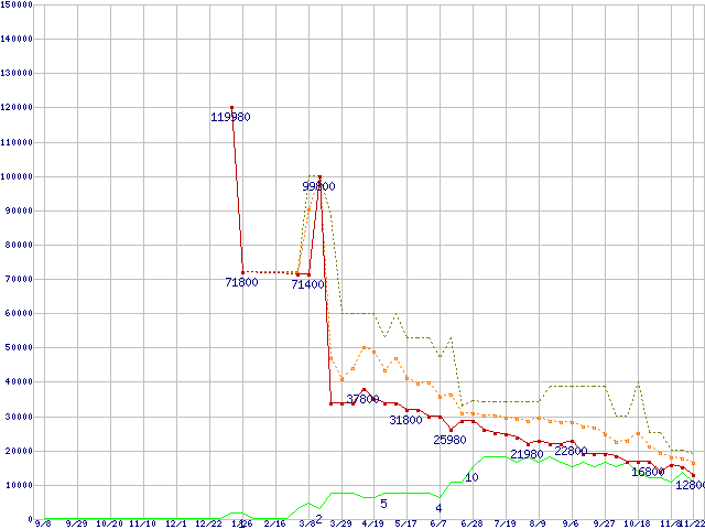 メモリ主要製品の最安値推移