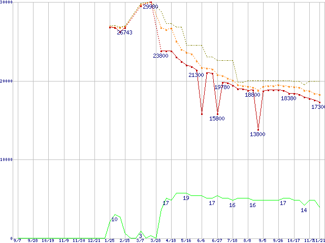 | Core 2 Duo E8400 (3GHz,L2 6MB)の価格推移 | | | (2007年9月7日~2008年11月21日) |