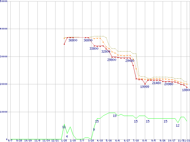 | Core 2 Duo E8500 (3.16GHz,L2 6MB)の価格推移 | | | (2007年9月7日~2008年11月21日) |