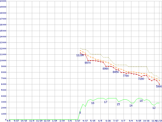| WD6400AAKS (640GB)の価格推移 | | | (2007年9月6日~2008年11月20日) |