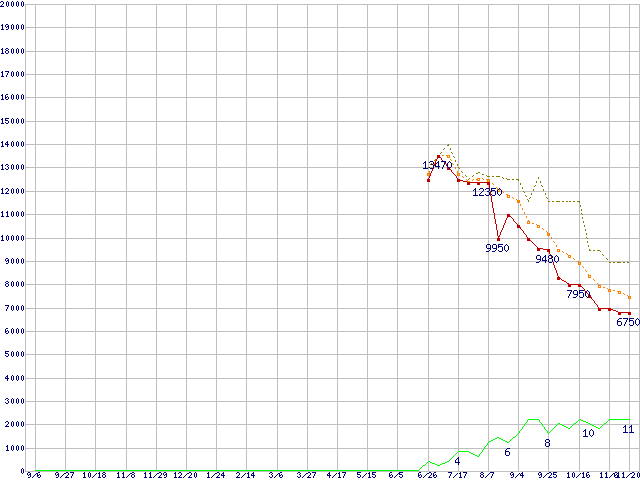 | HTS723216L9A360 (160GB,16MB)の価格推移 | | | (2007年9月6日~2008年11月20日) |