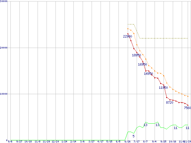 | HTS723225L9A360 (250GB,16MB)の価格推移 | | | (2007年9月6日~2008年11月20日) |