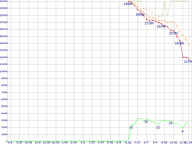| WD1001FALS (1TB,32MB)の価格推移 | | | (2007年9月6日~2008年11月20日) |