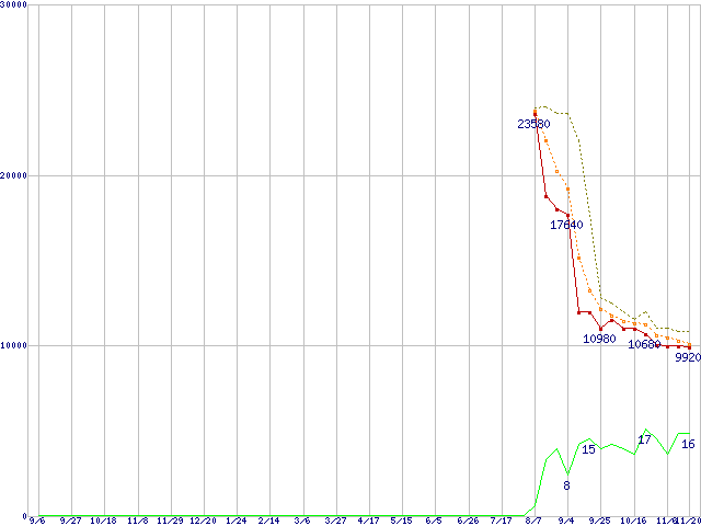 | ST31000333AS (1TB,32MB)の価格推移 | | | (2007年9月6日~2008年11月20日) |