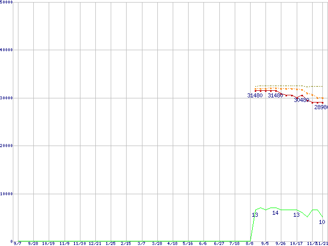 | Core 2 Quad Q9400 (2.66GHz,L2 3MB×2)の価格推移 | | | (2007年9月7日~2008年11月21日) |