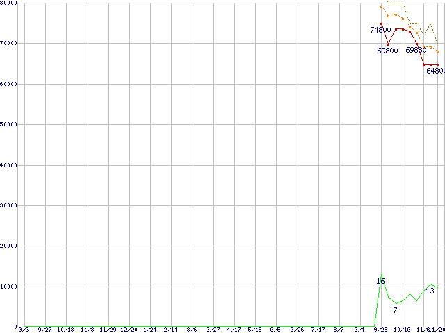| SSDSA2MH080G1C5 (80GB,MLC)の価格推移 | | | (2007年9月6日~2008年11月20日) |