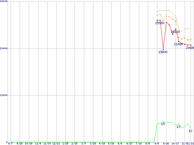 | Core 2 Quad Q8200 (2.33GHz,L2 2MB×2)の価格推移 | | | (2007年9月7日~2008年11月21日) |
