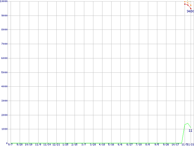 | Athlon X2 5050e (2.6GHz,L2 512KB×2)の価格推移 | | | (2007年9月7日~2008年11月21日) |
