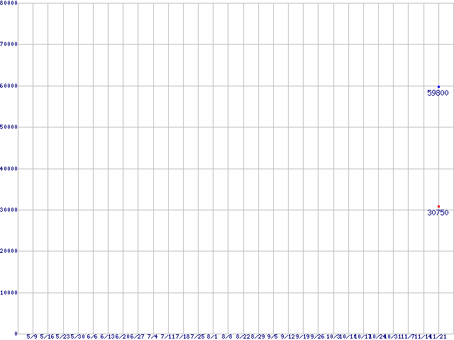 | LGA1366 (QPI 4.8GT/s,L3キャッシュ8MB,Quad Core,Hyper-Threading)の最安値推移 | | | (2008年5月9日~2008年11月21日) |