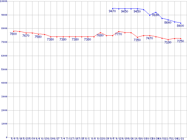 Socket AM2 (HyperTransport 3.0,Quad Core)の最安値推移