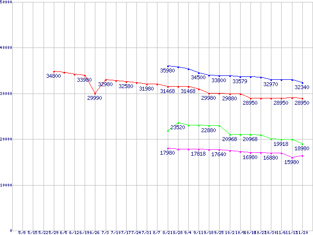 WD VelociRaptor (10000rpm,3Gb/s,16MB)の最安値推移