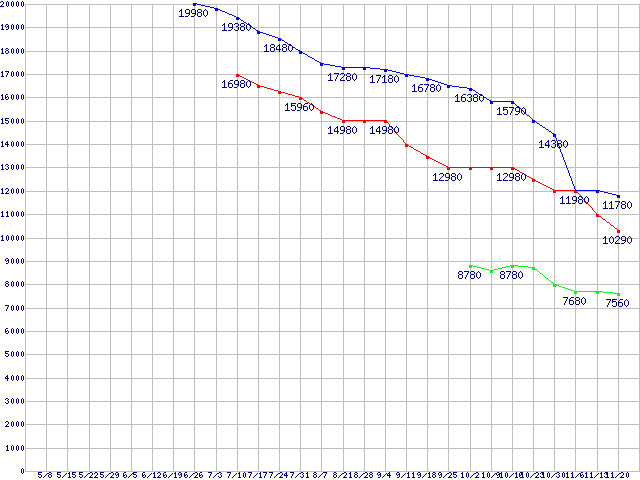 WD VelociRaptor (10000rpm,3Gb/s,16MB)の最安値推移