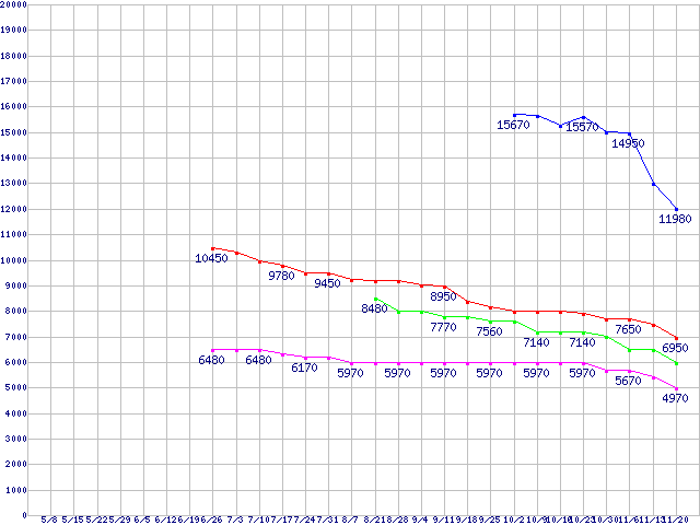 WD Scorpio Blue (5400rpm,3Gb/s,2.5インチ)の最安値推移