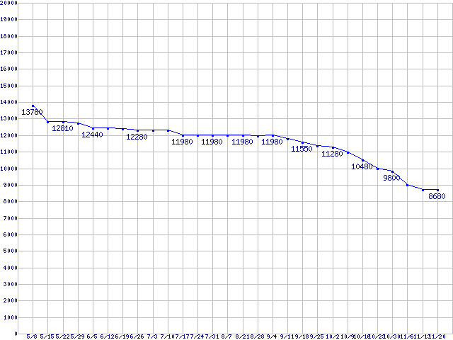 Deskstar P7K500 (7200rpm,3Gb/s)の最安値推移