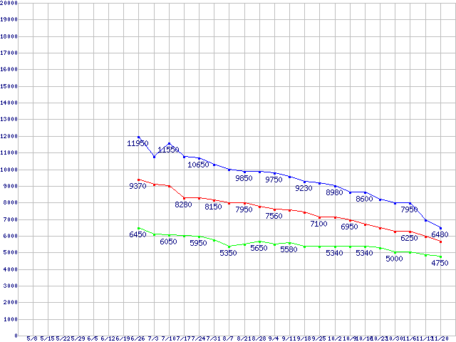 Travelstar 5K320 (5400rpm,3Gb/s,2.5インチ)の最安値推移