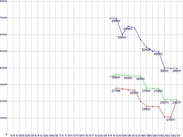 | OCZ Core Series V2 SATA II 2.5" SSD (SSD,3Gb/s,2.5インチ)の最安値推移 | | | (2008年5月8日~2008年11月20日) |