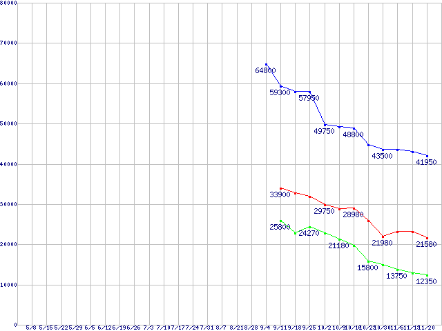| PATRIOT Extreme Performance Warp Solid State Disk (SSD,3Gb/s,2.5インチ)の最安値推移 | | | (2008年5月8日~2008年11月20日) |