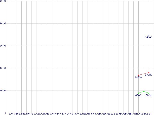 WD Scorpio Blue (5400rpm,3Gb/s,2.5インチ)の最安値推移