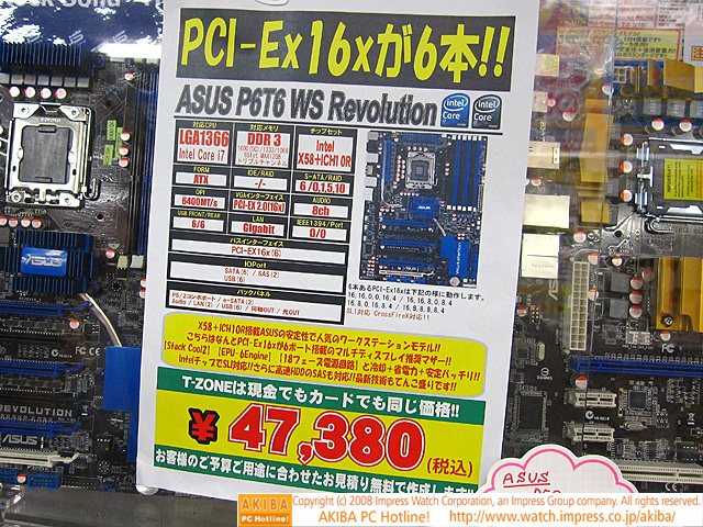 PCIe x16×6本のX58マザーが展示中