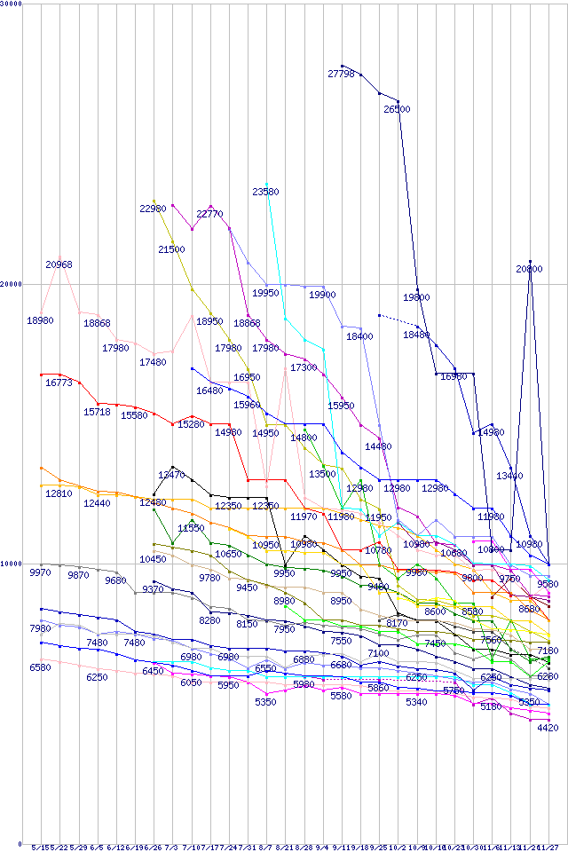 ※製品名をクリックすると個別のグラフを表示します ※点線部は販売店が確認できなかった、または調査データがないことを示します |