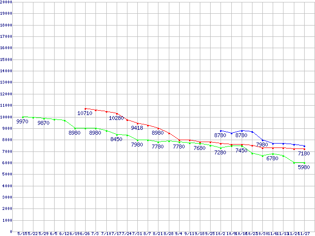 HDD 750GB~1TB未満の最安値推移