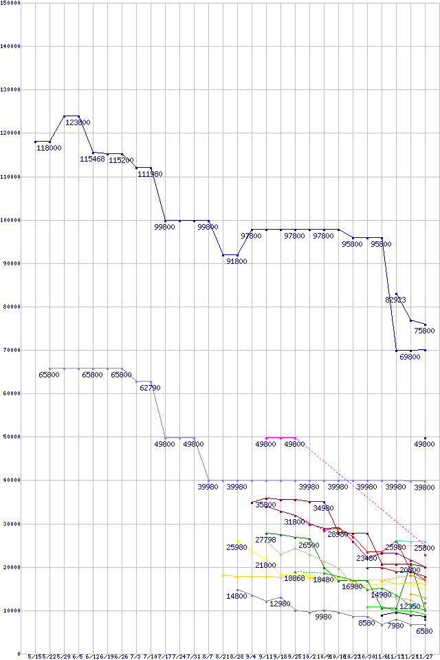 | HDD/SSD 30GB~80GB未満の最安値推移 | | | (2008年5月15日~2008年11月27日) |
