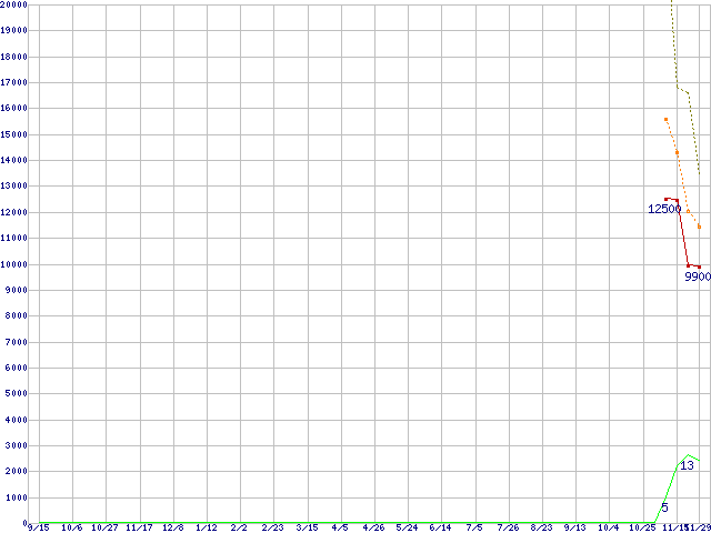 | PC3-10600 1GB×3枚組みセットの価格推移 | | | (2007年9月15日~2008年11月29日) |