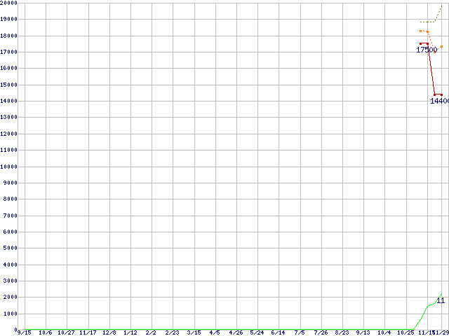 | PC3-12800 1GB×3枚組みセットの価格推移 | | | (2007年9月15日~2008年11月29日) |