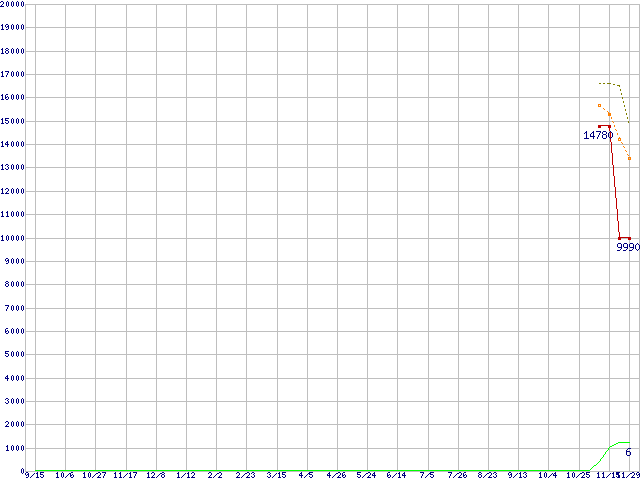 | PC3-8500 1GB×3枚組みセットの価格推移 | | | (2007年9月15日~2008年11月29日) |