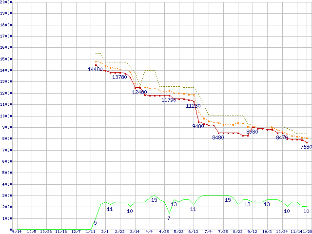 | Athlon X2 5400 (2.8GHz,L2 512KB×2)の価格推移 | | | (2007年9月14日~2008年11月28日) |