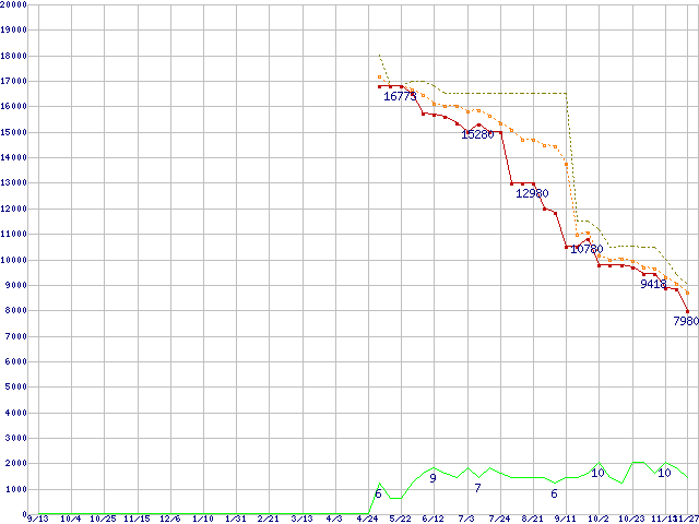| HD103UI (1TB,32MB)の価格推移 | | | (2007年9月13日~2008年11月27日) |