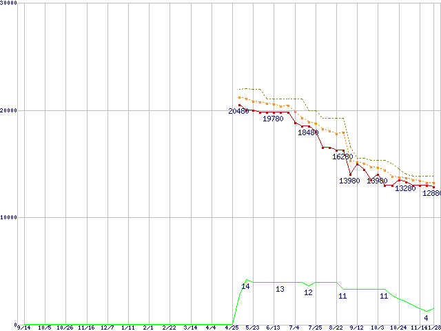 | Phenom X3 8750 (2.4GHz,L2 512KB×3,L3 2MB)の価格推移 | | | (2007年9月14日~2008年11月28日) |