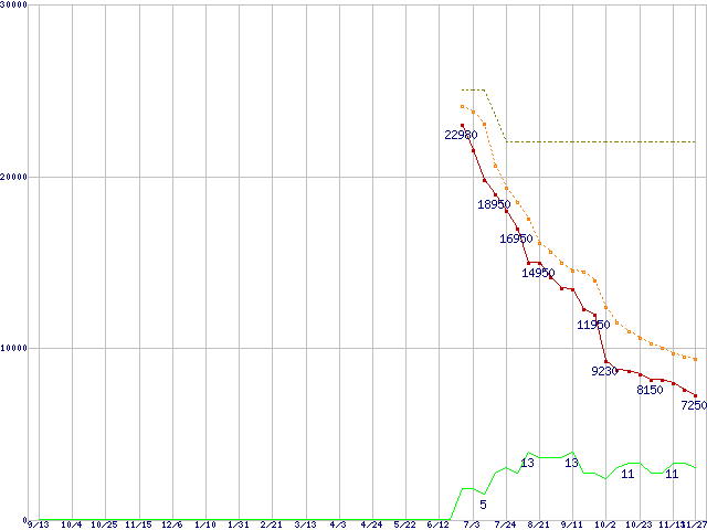 | HTS723225L9A360 (250GB,16MB)の価格推移 | | | (2007年9月13日~2008年11月27日) |