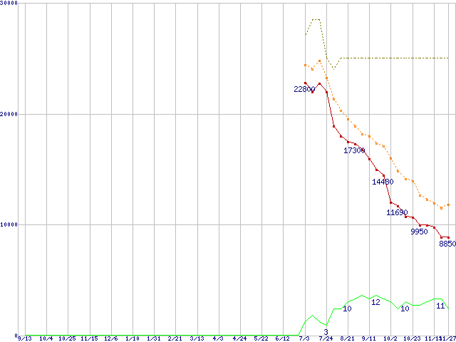 | HTS723232L9A360 (320GB,16MB)の価格推移 | | | (2007年9月13日~2008年11月27日) |