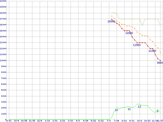 | WD7501AALS (750GB,32MB)の価格推移 | | | (2007年9月13日~2008年11月27日) |
