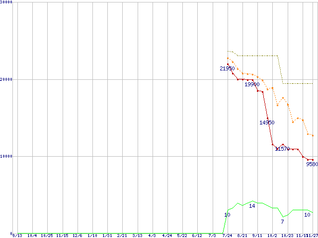 | WD3200BEKT (320GB,16MB)の価格推移 | | | (2007年9月13日~2008年11月27日) |