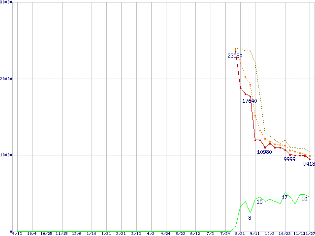 | ST31000333AS (1TB,32MB)の価格推移 | | | (2007年9月13日~2008年11月27日) |