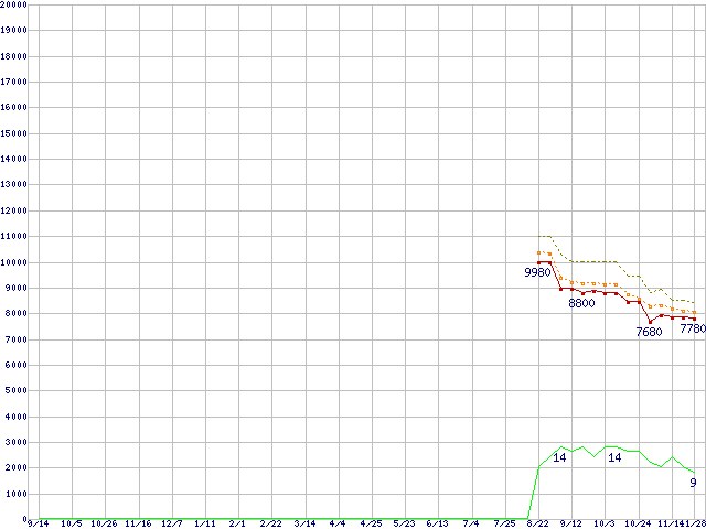 | Athlon X2 5400 Black Edition (2.8GHz,L2 512KB×2)の価格推移 | | | (2007年9月14日~2008年11月28日) |