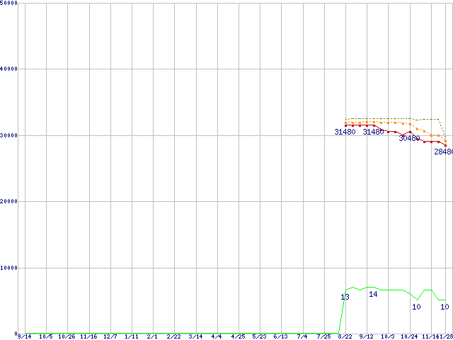 | Core 2 Quad Q9400 (2.66GHz,L2 3MB×2)の価格推移 | | | (2007年9月14日~2008年11月28日) |