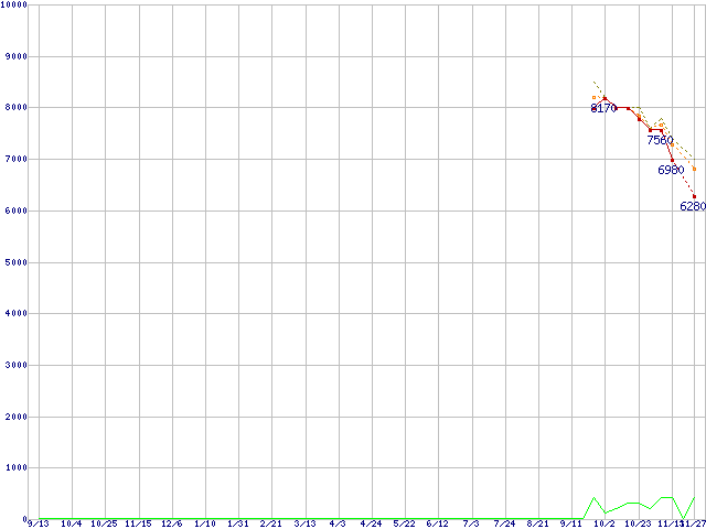 | WD5001AALS (500GB,32MB)の価格推移 | | | (2007年9月13日~2008年11月27日) |