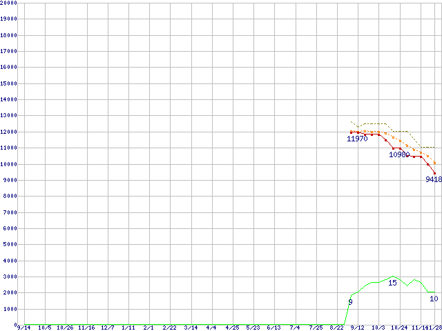 | Athlon X2 6000+ (3.1GHz,L2 512KB×2)の価格推移 | | | (2007年9月14日~2008年11月28日) |