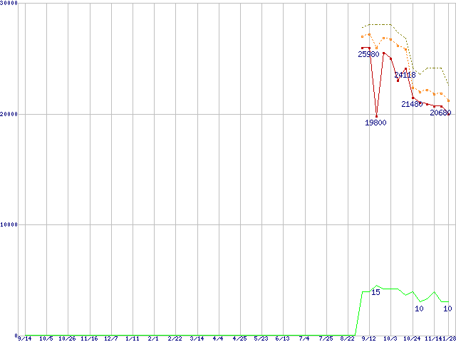 | Core 2 Quad Q8200 (2.33GHz,L2 2MB×2)の価格推移 | | | (2007年9月14日~2008年11月28日) |