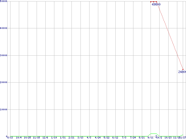 | MMCRE64G5MPP-0VA (64GB,MLC)の価格推移 | | | (2007年9月13日~2008年11月27日) |