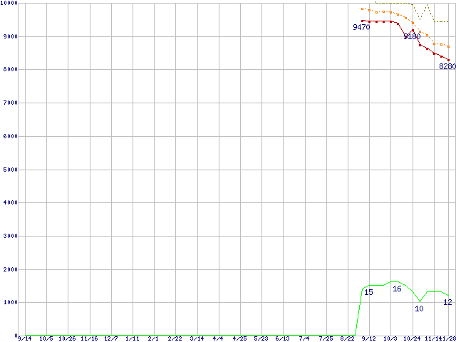 | Pentium Dual-Core E5200 (2.5GHz,L2 2MB)の価格推移 | | | (2007年9月14日~2008年11月28日) |