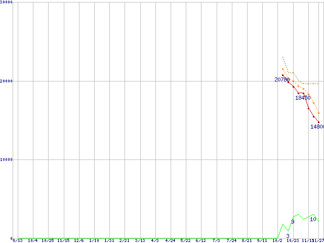 | ST31500341AS (1.5TB,32MB)の価格推移 | | | (2007年9月13日~2008年11月27日) |
