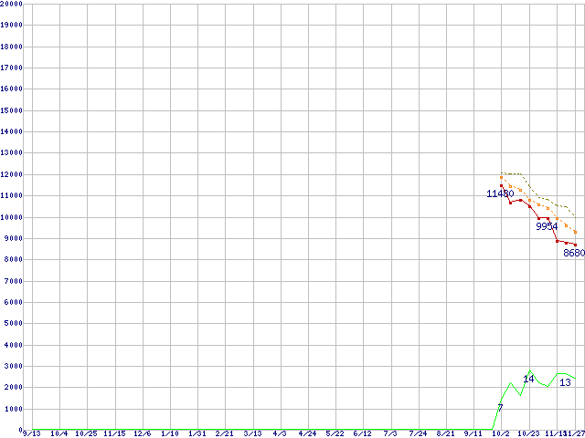 | WD10EADS (1TB,32MB)の価格推移 | | | (2007年9月13日~2008年11月27日) |